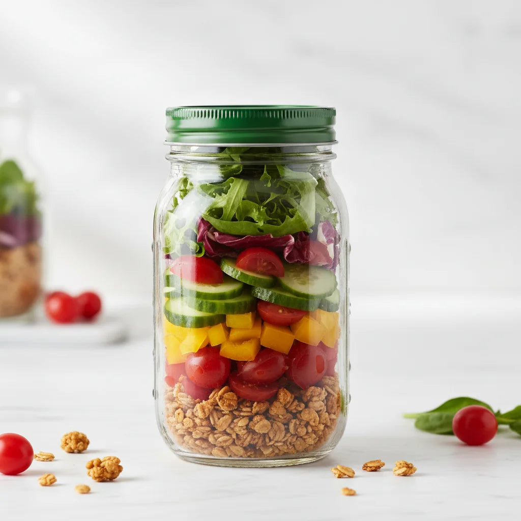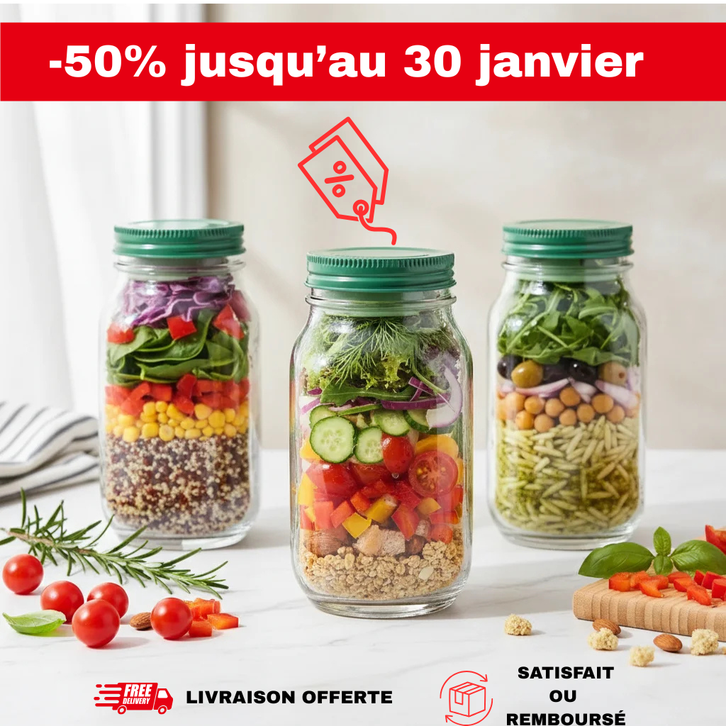 Absolument ! Notre conteneur à salade en verre est conçu pour ça. Grâce à sa conception intelligente et hermétique, vos ingrédients restent séparés et croquants pendant des jours. Fini les salades molles et tristes à midi ! Préparez vos repas à l'avance et savourez une fraîcheur impeccable, même après une longue journée. C'est la solution parfaite pour les parents actifs qui veulent manger sainement sans sacrifier leur temps précieux. Imaginez : une salade parfaite, prête quand vous l'êtes, sans effort !
